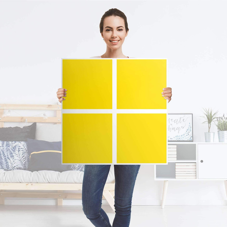 Unsere Klebefolie Gelb Dark für das Kallax Regal 4 Türen ist der Blickfang in jedem Wohnzimmer. Die Dekofolien sind hochwertige, selbsthaftende Vinylfolien (seidenmatt) und können dank Bubble-free Technologie kinderleicht verklebt werden.