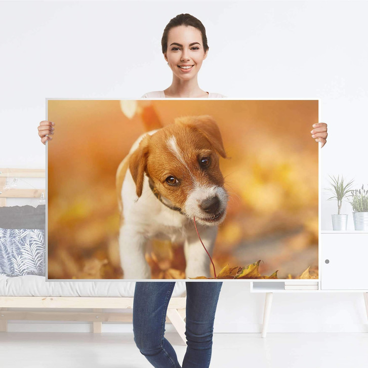 Unsere Klebefolie Jack the Puppy für den Lack Tisch 118x78cm ist der Blickfang in jedem Wohnzimmer. Die Dekofolien sind hochwertige, selbsthaftende Vinylfolien (seidenmatt) und können dank Bubble-free Technologie kinderleicht verklebt werden.
