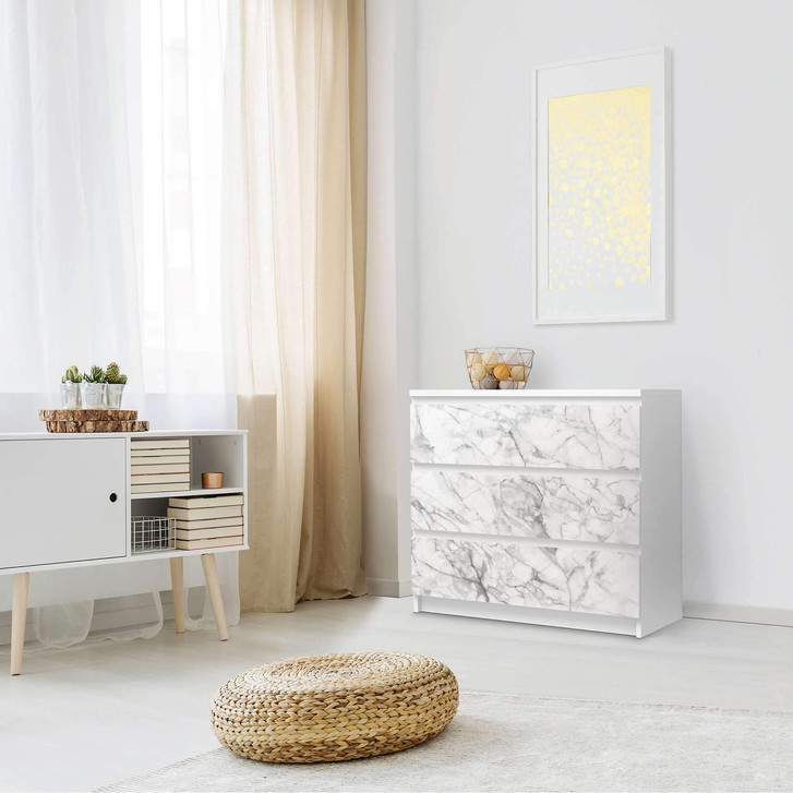 Klebefolie IKEA Malm Kommode 3 Schubladen - Marmor weiss
