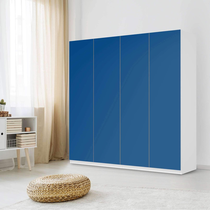 Unsere Klebefolie Blau Dark ist passend zugeschnitten für den Pax Schrank 201cm Höhe - 4 Türen und ist der Blickfang in jedem Schlafzimmer. Die Dekofolien sind hochwertige, selbsthaftende Vinylfolien (seidenmatt) und können dank Bubble-free Technologie kinderleicht verklebt werden.