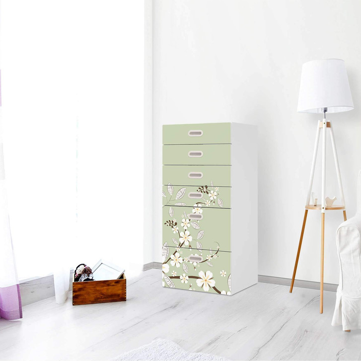 Klebefolie IKEA Stuva / Fritids Kommode - 6 Schubladen - White Blossoms