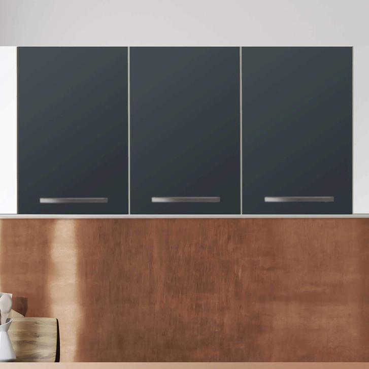 Unsere Klebefolie Blaugrau Dark (120cm Breite - entspricht der Breite von 3 Türen) für den Wandschrank ist der Blickfang in jeder Küche. Die Küchenfolien sind hochwertige, selbsthaftende Vinylfolien (seidenmatt) und können auf das gewünschte Mass zugeschnitten werden - je nachdem ob die Türkante umklebt werden soll oder nicht.