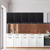 Unsere Klebefolie Schwarz (200cm Breite - entspricht der Breite von 5 Türen) für den Wandschrank ist der Blickfang in jeder Küche. Die Küchenfolien sind hochwertige, selbsthaftende Vinylfolien (seidenmatt) und können auf das gewünschte Mass zugeschnitten werden - je nachdem ob die Türkante umklebt werden soll oder nicht.