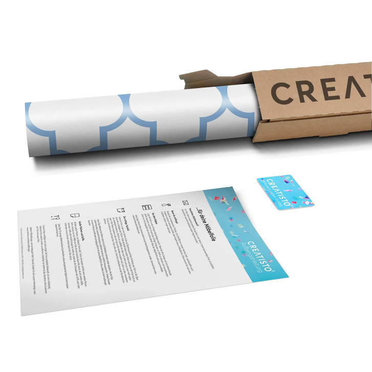 Unsere Küchenfolie Retro Pattern - Blau (80cm Breite - entspricht der Breite von 2 Türen) für den Unterschrank ist der Blickfang in jeder Küche. Die Küchenfolien sind hochwertige, selbsthaftende Vinylfolien (seidenmatt) und können auf das gewünschte Mass zugeschnitten werden - je nachdem ob die Türkante umklebt werden soll oder nicht.