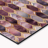 Die geometrischen Formen sind in verschiedenen, zarten Violetttönen dargestellt, die fast wie Buntglas aussehen. Die Farben werden durch die goldfarbenen Linien mit Glitzereffekt voneinander getrennt, was für zusätzliche Struktur sorgt. Hol dir das farbenfrohe Farbenspiel nach Hause und dekoriere mit dem aussergewöhnlichen Design von Elisabeth Fredriksson!
