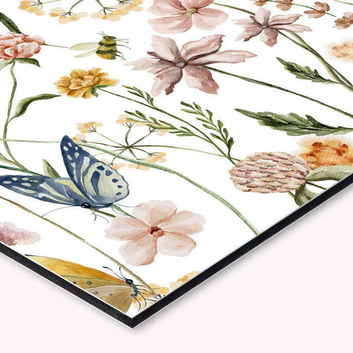 Mit dieser floralen Illustration holst du dir einen Hauch Sommer ins Haus! UN Designs hat mit diesem Motiv ein farbenfrohes Naturdesign geschaffen, das sich besonders als Küchenrückwand eignet. Dank des robusten Aluminium-Dibond-Materials kann es auch im Aussenbereich eingesetzt werden, wo sich seine natürliche Wirkung frei entfalten kann. Die zarten Blüten und Schmetterlinge auf weissem Hintergrund bringen eine gewisse Leichtigkeit in den Raum und sind als Wandmotiv in vielen verschiedenen Materialien erhältlich.