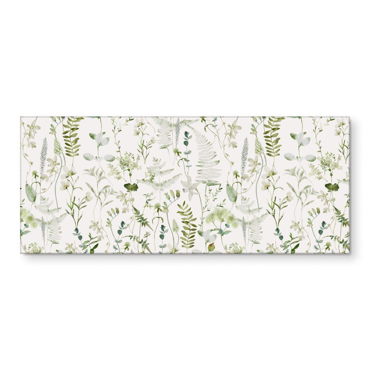 Dekoriere mit dem Pflanzenwandbild und schaffe eine gemütliche Atmosphäre im natürlichen Stil! Die botanische Illustration von UN Designs zeigt grüne Blätter, Kräuter und Gräser aus Wald und Wiese. Das Motiv ist eine Hommage an die einzigartige Natur und besticht durch sein schlichtes Design.