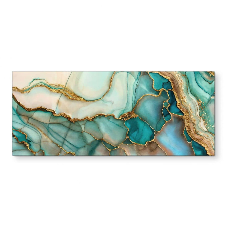 Küchenrückwand Marmorierte Wellen in Türkis und Gold - Haase