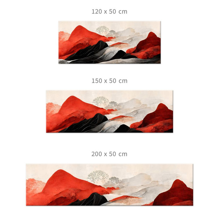 Abstrakt, geometrisch oder klassisch? Kunst ist innovativ und vielseitig. Finde genau den Stil, der zu dir passt! Dekoriere mit dem Landschaftsmotiv im Japandi-Stil und lass eine gemütliche Atmosphäre aufkommen! Der Japandi-Stil vereint japanische und skandinavische Einrichtungsstile. Dies findet sich auch in der Welt der Kunst wieder. Dieser Stilmix steht für Schönheit, Einfachheit und Reduktion und zeigt, dass man mit wenigen Mitteln grosse Effekte erzielen kann. Während der skandinavische Teil von warmen Naturtönen geprägt ist, besticht der japanische Stil durch Spannung und ausdrucksstarke Farben. Die hier verwendeten Farben Schwarz, Rot und Beige harmonieren wunderbar miteinander und erzeugen einen stimmigen Gesamteindruck. Hol dir das Motiv als Küchenrückwand nach Hause und lass Gemütlichkeit einziehen!