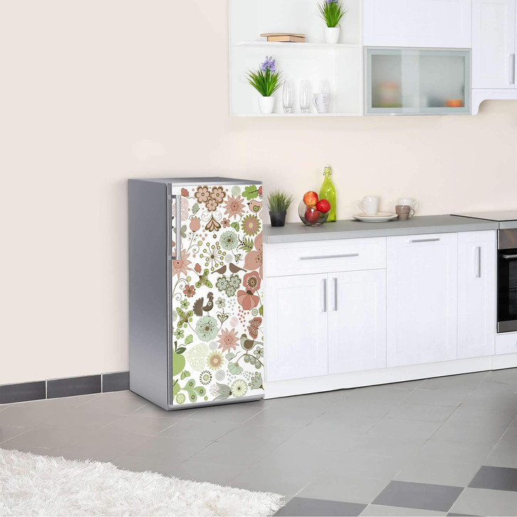 Unsere Kühlschrankfolie Flower Pattern für die Kühlschrankgrösse 60x120cm ist der Blickfang in jeder Küche. Die Dekofolien sind hochwertige, selbsthaftende Vinylfolien (seidenmatt) und können dank Bubble-free Technologie kinderleicht verklebt werden.