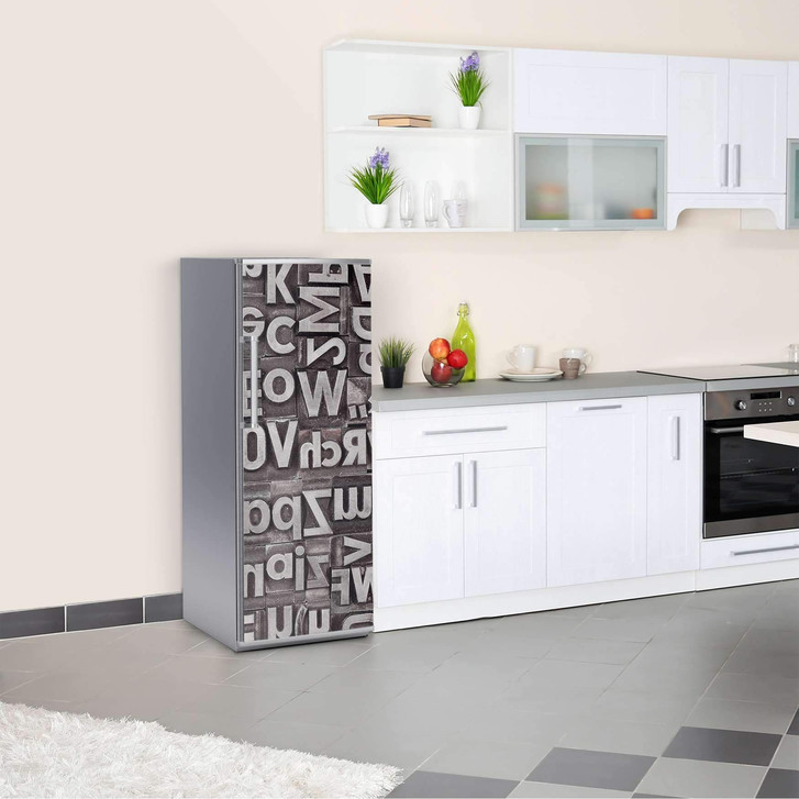 Unsere Kühlschrankfolie Alphabet für die Kühlschrankgrösse 60x150cm ist der Blickfang in jeder Küche. Die Dekofolien sind hochwertige, selbsthaftende Vinylfolien (seidenmatt) und können dank Bubble-free Technologie kinderleicht verklebt werden.