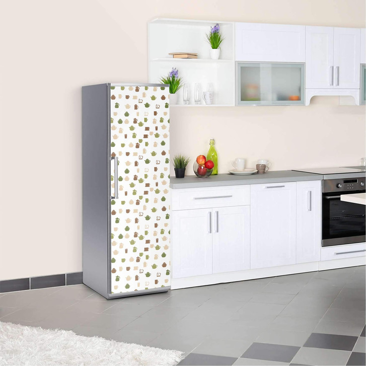 Unsere Kühlschrankfolie Cans and Cups für die Kühlschrankgrösse 60x180cm ist der Blickfang in jeder Küche. Die Dekofolien sind hochwertige, selbsthaftende Vinylfolien (seidenmatt) und können dank Bubble-free Technologie kinderleicht verklebt werden.