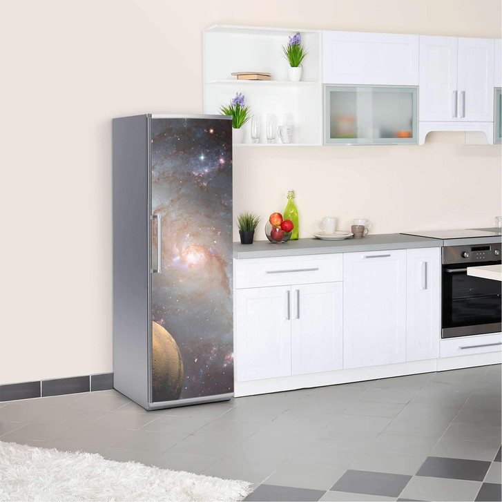 Unsere Kühlschrankfolie Milky Way für die Kühlschrankgrösse 60x180cm ist der Blickfang in jeder Küche. Die Dekofolien sind hochwertige, selbsthaftende Vinylfolien (seidenmatt) und können dank Bubble-free Technologie kinderleicht verklebt werden.