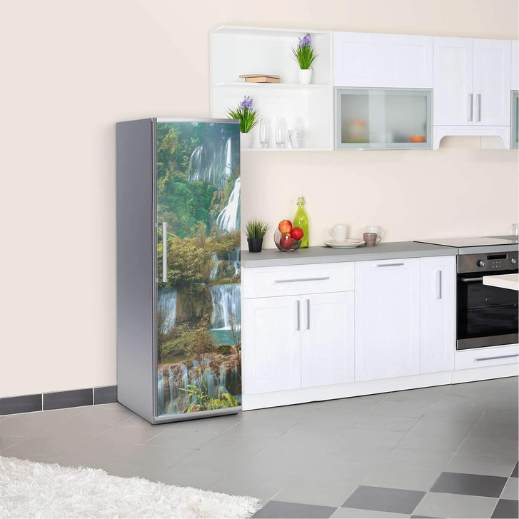 Unsere Kühlschrankfolie Rainforest für die Kühlschrankgrösse 60x180cm ist der Blickfang in jeder Küche. Die Dekofolien sind hochwertige, selbsthaftende Vinylfolien (seidenmatt) und können dank Bubble-free Technologie kinderleicht verklebt werden.