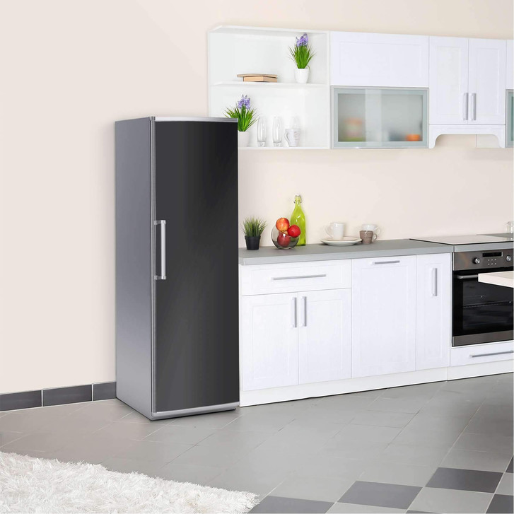 Unsere Kühlschrankfolie Schwarz für die Kühlschrankgrösse 60x180cm ist der Blickfang in jeder Küche. Die Dekofolien sind hochwertige, selbsthaftende Vinylfolien (seidenmatt) und können dank Bubble-free Technologie kinderleicht verklebt werden.