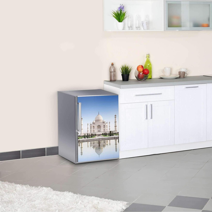 Unsere Kühlschrankfolie Taj Mahal für die Kühlschrankgrösse 60x80cm ist der Blickfang in jeder Küche. Die Dekofolien sind hochwertige, selbsthaftende Vinylfolien (seidenmatt) und können dank Bubble-free Technologie kinderleicht verklebt werden.