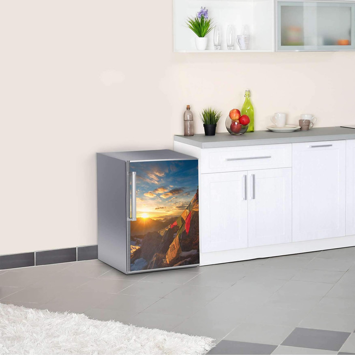 Unsere Kühlschrankfolie Tibet für die Kühlschrankgrösse 60x80cm ist der Blickfang in jeder Küche. Die Dekofolien sind hochwertige, selbsthaftende Vinylfolien (seidenmatt) und können dank Bubble-free Technologie kinderleicht verklebt werden.