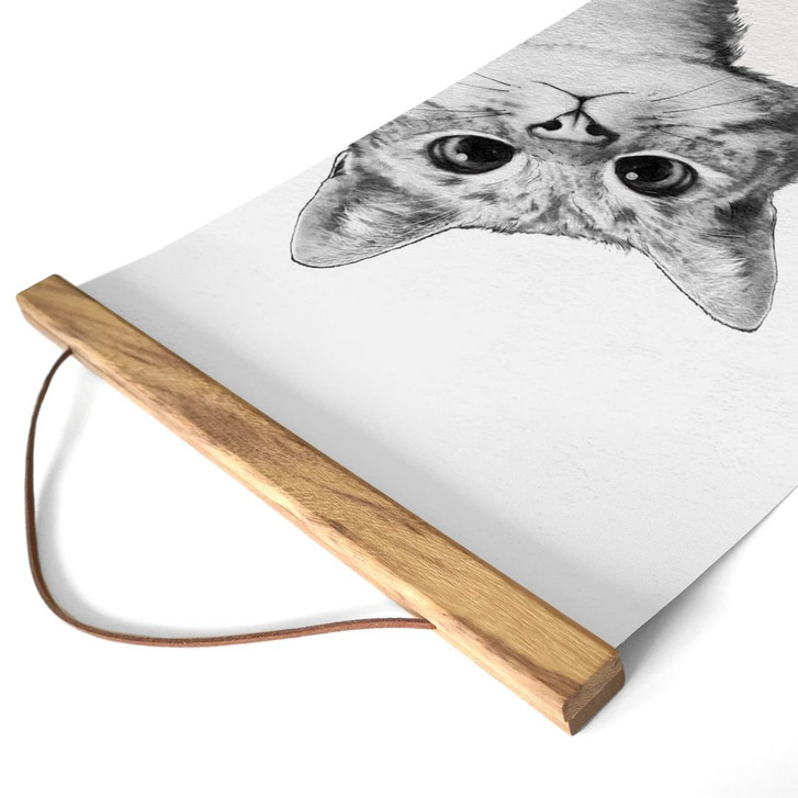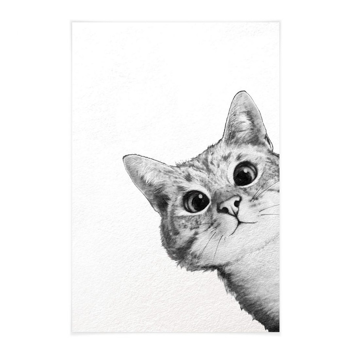Zaubere mit dieser Wanddekoration ein trendiges Wohnerlebnis und verpasse deinen Wänden das passende Outfit. Mit der Illustration der Künstlerin Laura Graves schaffst du einen gekonnten Blickfang in deinem Zimmer. Aus dem rechten Bildrand schaut eine junge, graue Katze. Sie blickt neugierig nach vorne und scheint dich direkt anzusehen.