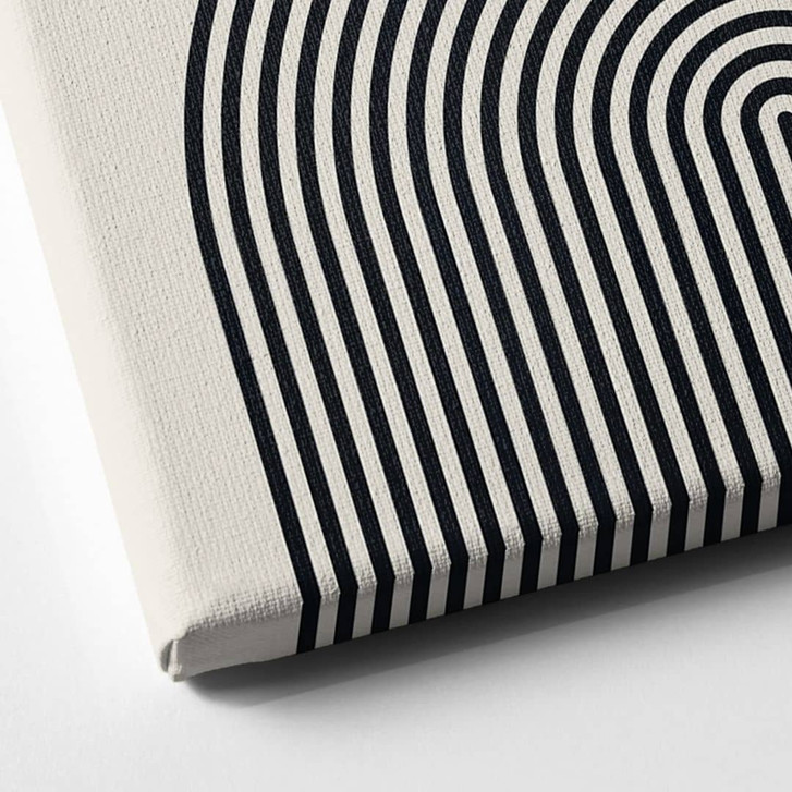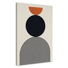 Diese stilvolle Leinwand kombiniert minimalistische Geometrie mit ausdrucksstarker Klarheit. Die harmonische Struktur aus Halbkreis, Kreis und geschwungenen Linien schafft eine faszinierende Balance, die sowohl beruhigend als auch dynamisch wirkt. Das monochrome Farbschema in Schwarz und Beige wird durch einen warmen Terrakotta-Akzent ergänzt, der dem Werk eine subtile Eleganz verleiht.