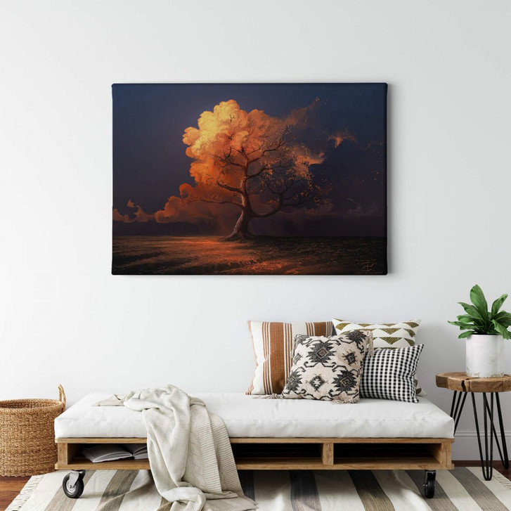 Zaubere mit dieser Wanddekoration ein neues Wohlgefühl und gib deinen Wänden das richtige Outfit. Und dieser Kunstdruck schafft eine natürliche Ausstrahlung, die sich direkt auf seine Umgebung ausbreitet und eine einladende Atmosphäre schafft. Und das Motiv aus der Serie Natur und Wald & Bäume lädt zum Entspannen ein und schafft eine Atmosphäre des Wohlbefindens. Die leuchtenden Farben der Blätter kündigen den Herbst an. Wenn der Wind weht, raschelt es in den Blättern der Bäume. Aber nicht nur der Wind weckt die Sinne: Kastanien, Eicheln und verschiedene Nüsse und Beeren fallen von den Bäumen und verwandeln die kühle Jahreszeit in eine romantische Landschaft, die zu einem gemütlichen Spaziergang einlädt. Manchmal kann man sogar die Waldtiere dabei beobachten, wie sie ihre Nahrungsvorräte sammeln. Mit diesem Bild im Querformat holen Sie sich ein Stück Natur und Idylle nach Hause und schaffen zu jeder Jahreszeit eine gemütliche und behagliche Atmosphäre in Ihren Räumen. Darüber hinaus besticht das Leinwandbild durch seine erstklassige Ästhetik, die nicht zuletzt durch die verwendeten Materialien und die Farbgebung in Blau und Orange unterstrichen wird. Unsere Leinwanddrucke bestehen aus festem Canvas und sind auf 2 cm dicken Keilrahmen handgespannt. Diese bestehen zu 100 % aus Fichtenholz. Die beeindruckende Farbintensität lässt das Bild lebendig und farbgetreu wirken.