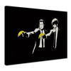 Du suchst nach aussergewöhnlicher Dekoration für deine Räume? Bei trenddeko.ch findest du das passende Wandbild für viele verschiedene Räume. Schmücke deine leeren Wände mit den gesellschaftskritischen Graffitis des berühmten Streetart-Künstlers Banksy. Das Leinwandbild „Pulp Fiction“ zeigt eine berühmte Szene aus dem Kultfilm. Das Gemälde entstand 2003 in London und wurde 2007 zerstört. Die Darstellung der beiden Auftragskiller Vincent Vega und Jules Winnfield machte John Travolta und Samuel L. Jackson weltberühmt. Banksy ersetzt die beiden Pistolen durch Bananen. Mit ihrer leuchtend gelben Farbe sind diese das einzige Highlight in der ansonsten monochromen Komposition.