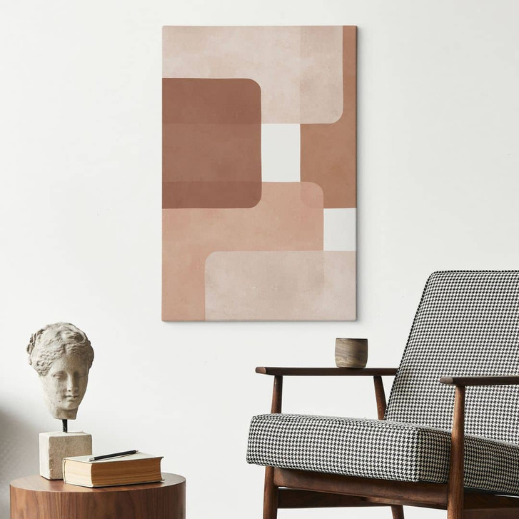 Verleihe deinem Raum mit diesem Leinwandbild von Vitor Costa einen Hauch von Eleganz und Wärme. Die harmonische Komposition aus geometrischen Formen und sanften Erdtönen, inspiriert vom Pantone-Farbtrend 2025 Mocha-Mousse, schafft eine beruhigende und stilvolle Atmosphäre.