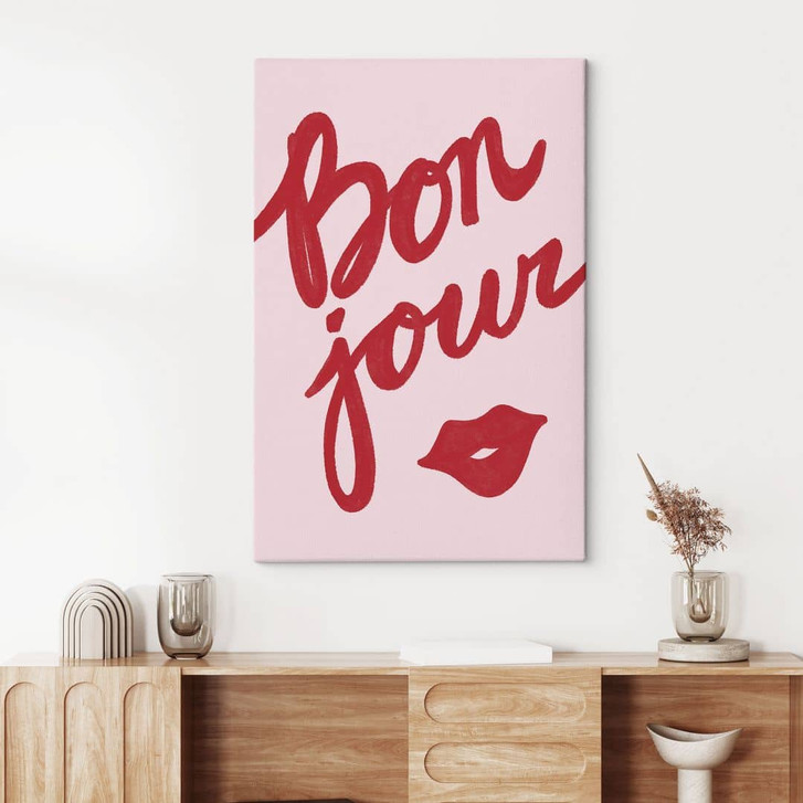 Bonjour Wandkunst – Französischer Gruss mit rotem Kussmund