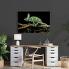 Ein kleines exotisches Wesen auf dem Ast macht hier in diesem Fotomotiv einen grossen Eindruck. Das Chamäleon ist ein wahrer Verwandlungskünstler. Je nach Stimmung kann es die Farbe seines Körpers ändern. Der Farbwechsel dient auch der Tarnung vor Feinden, da der Baumbewohner die Farbe seiner Umgebung annimmt. Mit seinen unabhängig voneinander beweglichen Augen kann das grüne Reptil sowohl seine Beute als auch seine Feinde viel früher erkennen und reagieren, ohne sich bewegen zu müssen. Entscheide dich für Fotografie als Leinwandbild, um deinem Zuhause natürliche und lebendige Akzente zu verleihen!
