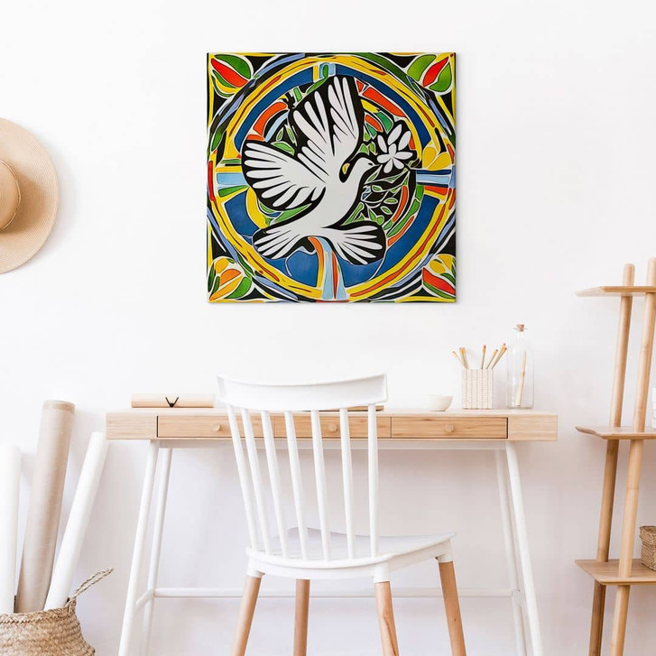 Leinwandbild Bunte Friedenstaube - Inspiriert von Matisse - Zamart - Quadratisch