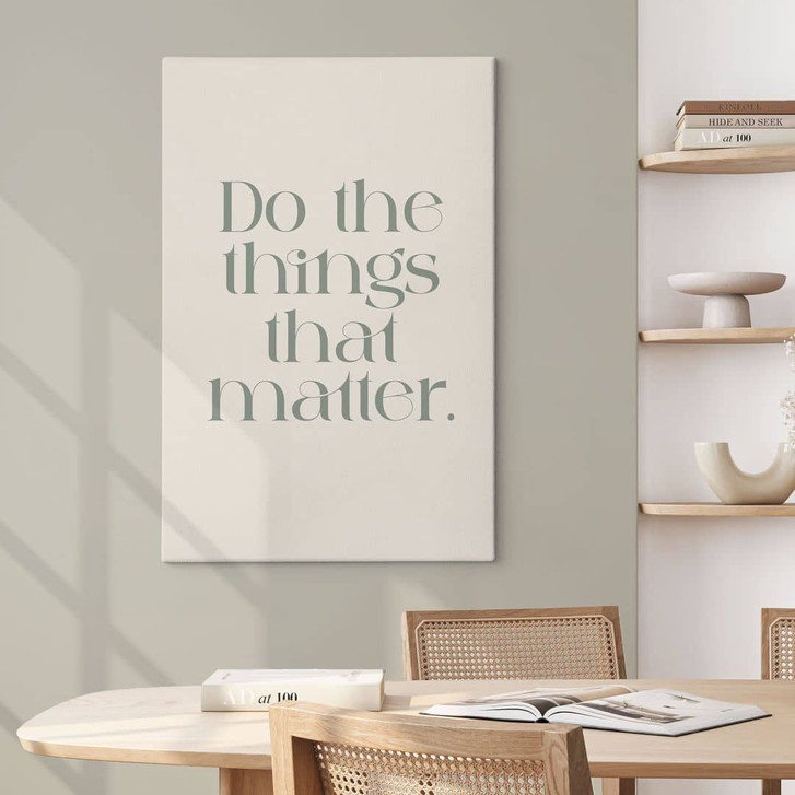 Bringe mit diesem hochwertigen Leinwandbild Inspiration und Stil in deine Wohnräume. Der klare, moderne Schriftzug „Do the things that matter“ erinnert dich täglich daran, dich auf das Wesentliche zu konzentrieren und deine Prioritäten bewusst zu setzen.