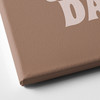 Der sanfte Farbton von Mocha Mousse, einer der Pantone-Trendfarben für 2025, schafft eine moderne und zugleich beruhigende Atmosphäre. Die cremefarbene Schrift im Retro-Stil sticht markant hervor und verleiht dem Design eine besondere Tiefe. Die matte Oberfläche der Leinwand unterstreicht den edlen Look und verhindert störende Spiegelungen, sodass die Botschaft bei jedem Licht perfekt zur Geltung kommt.