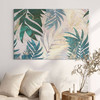 Leinwandbild Exotische Palmenblätter in Gold-grün - Manovski