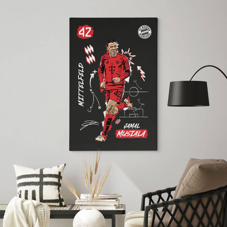 Sichere dir jetzt dieses einzigartige Porträt von Jamal Musiala – ein Muss für alle, die die Zukunft des FC Bayern in ihrem Zuhause spüren wollen.