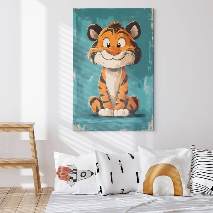 Der hochwertige Druck auf Leinwand bringt die liebevollen Details des Motivs perfekt zur Geltung. Die weiche Textur der Leinwand verleiht dem Bild eine natürliche Tiefe und verstärkt die leuchtende Wirkung der Farben. Ob im Kinderzimmer, im Spielbereich oder als farbenfroher Akzent im Wohnzimmer – dieser Babytiger zaubert jedem ein Lächeln ins Gesicht!