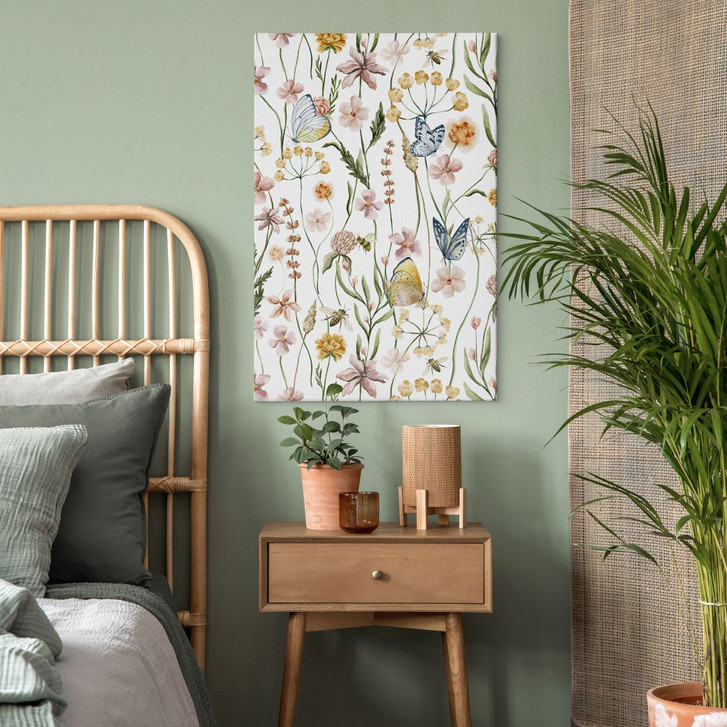 Mit dieser floralen Illustration holst du dir einen Hauch Sommerflair ins Haus! UN Designs hat mit diesem Motiv ein farbenfrohes Naturdesign geschaffen, das sich nicht nur für Flur, Wohnzimmer und Kinderzimmer eignet. Die zarten Blumen und Schmetterlinge auf cremefarbenem Hintergrund bringen eine gewisse Leichtigkeit in den Raum und sind als Wandmotiv in vielen verschiedenen Materialien erhältlich. Neben seinem inspirierenden Motiv in leuchtenden Farben überzeugt das Leinwandbild durch hochwertige Materialien und trendiges Design im Hochformat. Durch sein Design passt es perfekt zu einer Vielzahl von Einrichtungsstilen.