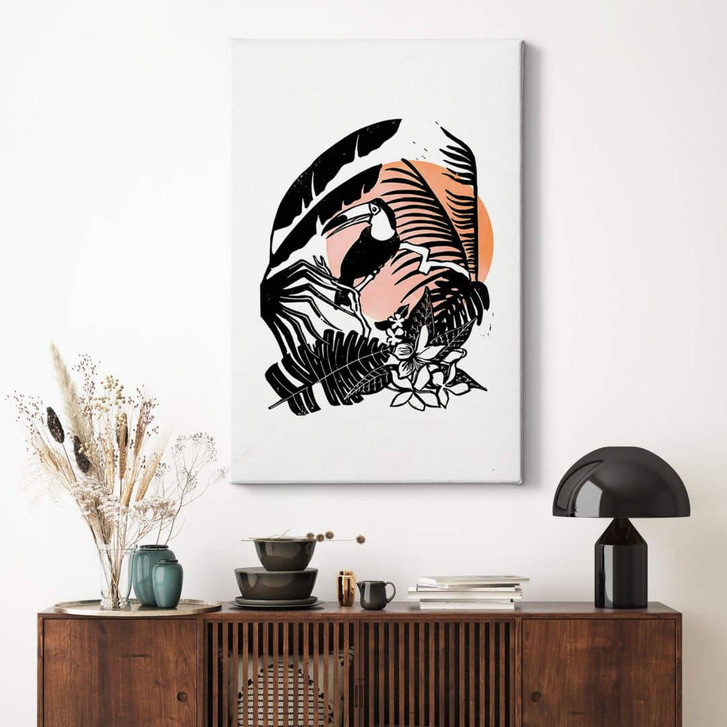 Leinwandbild Goed Blauw - Linolschnitt Tukan