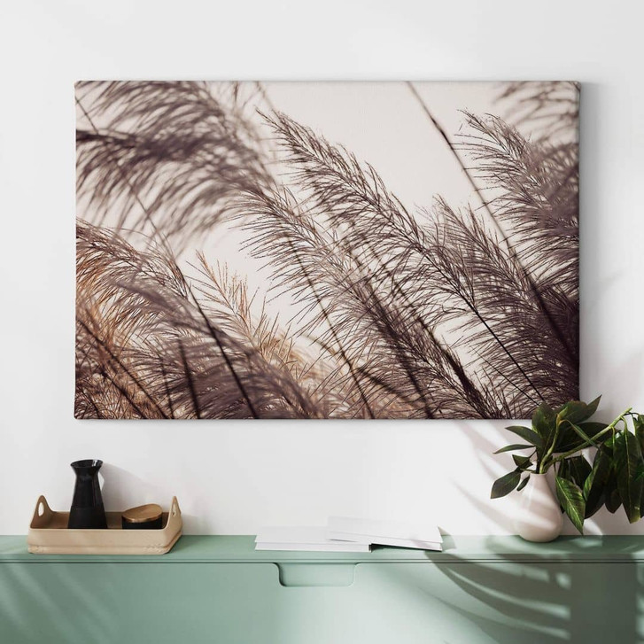 Das Motiv der Gräser in Pastelltönen ist einfach romantisch und verträumt. Das Foto strahlt Wärme und Gemütlichkeit aus und erzeugt zudem eine sanfte Stimmung, die beruhigend wirkt. Das beruhigende Pflanzenbild versetzt einen direkt auf eine sommerliche Wiese, die zum Träumen einlädt. Die minimalistische Fotografie passt perfekt zu den Einrichtungsstilen Boho und Skandinavisch und sorgt sofort für ein tolles Wohlgefühl. Überzeugt euch selbst: Schon mit wenigen Handgriffen lässt sich der Wohlfühlfaktor schnell und einfach steigern. Das Leinwandbild besticht ausserdem durch seine beigefarbene Farbe, die seine hochwertige Optik unterstreicht. Zusammen mit den ausgewählten Materialien entsteht ein anspruchsvolles Kunstwerk.