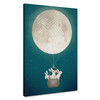 Eine wunderbare, klare Nacht in der drei weisse Kaninchen fröhlich in einem Korb am Mond hängen. Der Mond sieht aus wie ein Heissluftballon und trägt die Kaninchen mit sich herum. Man möchte selbst im Korb sitzen und die wunderbare Nacht geniessen.
