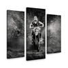 Im mittleren Bild ist der Motorradfahrer in seiner entschlossenen Pose eindrucksvoll in Szene gesetzt, um die Hindernisse in Form von bergigen Hügeln zu überwinden. Die äusseren Teile des Bildes hingegen erweitern das Bild in seiner strahlenden Wirkung des rasenden Motocross. Dieses hochwertige Leinwandbild in drei Teilen füllt mühelos eine ganze leere Wand. Die Grössen der einzelnen Bilder betragen zweimal 30 x 80 cm und einmal 40 x 100 cm. Die Abstände zwischen den einzelnen Bildern können Sie je nach Raumsituation und eigenen Vorstellungen selbst gestalten.