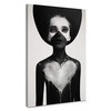 Die junge Frau, die nach oben schaut, trägt ein grosses weisses Herz auf ihrem schwarz bemalten Körper.