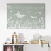Diese kunstvolle Illustration entführt in eine faszinierende Meereswelt voller Ruhe und Anmut. Die sanften Grüntöne des Motivs schaffen eine harmonische Atmosphäre, die zum Träumen einlädt. Die detaillierten Zeichnungen der Meeresbewohner verleihen dem Bild eine lebendige Dynamik und machen es zu einem zeitlosen Blickfang für jeden Raum.