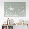 Diese Illustration kommt besonders gut in einem Kinderzimmer zur Geltung. Die freundlichen Meeresbewohner und sanften Farben schaffen eine beruhigende Umgebung, die die Fantasie anregt und zum Träumen einlädt. Ob als beruhigender Begleiter beim Einschlafen oder als inspirierendes Element für kleine Abenteurer – dieses Wandbild verwandelt jeden Raum in einen Ort des Wohlbefindens.