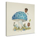 Eine der Eicheln steht auf einem grossen blauen Pilz und hat eine Giesskanne in der Hand. Er gibt seinem Freund Wasser, der unten auf der Wiese steht. Der kleine Freund freut sich sehr darüber und strahlt vor Freude, aus der ein Blatt gewachsen ist. Die gezeichnete Umgebung mit den Steinen, den Pflanzen und den Pilzen, die wachsen, lassen das Bild harmonisch aussehen.