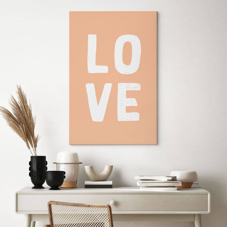 Pfirsichfarbenes Leinwandbild mit der Aufschrift „LOVE“