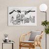 Rom ist ein Ort voller Museen, Basiliken und anderer Gebäude, die historisch und einzigartig sind. Auf diesem Bild sind die bedeutenden Wahrzeichen Roms zu sehen. Neben dem Reiterstandbild des Marc Aurel können hier weitere Sehenswürdigkeiten wie das Kolosseum und der Petersdom in der Vatikanstadt bestaunt werden. Mit dieser zeitgenössischen Zeichnung kommen Freunde der italienischen Kultur voll auf ihre Kosten. Hänge das schwarz-weisse Motiv an deine Lieblingswand und zeige, für welche Weltstadt dein Herz schlägt. In jedem Fall wird das Stadtmotiv als Leinwandbild ein ausdrucksstarker Blickfang sein.