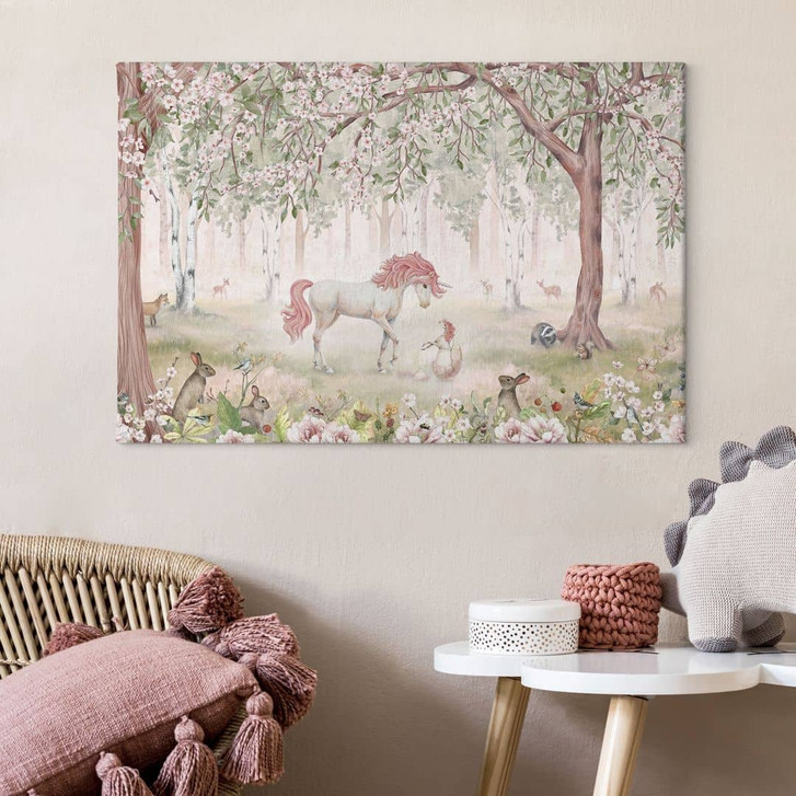 Leinwandbild Märchenhafter Wald mit Einhörnern - Kikki Belle