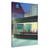 Verabschiede dich von leeren Wänden und hole dir ein Stück Kreativität nach Hause! Das Motiv als Leinwandbild stammt von Wolf-Rüdiger Marunde und zeigt einen Hund, der an der Theke eines Diners sitzt und telefoniert. Dieses Gemälde wurde von „Nighthawks“ des Malers Edward Hopper inspiriert.