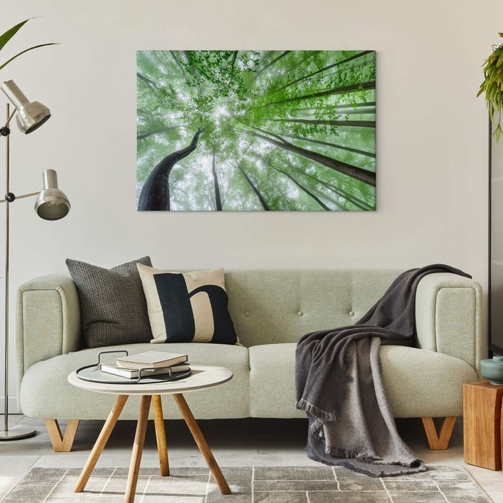 Verwandle dein Zuhause mit dem grünen Waldmotiv in eine natürliche Umgebung! Die natürliche Schönheit der Bäume mit den üppigen Blättern wirkt frisch und beruhigend zugleich. Ob als Leinwand-, Glas- oder Acrylglasbild oder als Poster und Fototapete im Grossformat: Egal, für welches Material du dich entscheidest, es eignet sich für jeden Raum. Die frische, grüne Farbe und die Froschperspektive setzen prächtige Baumkronen perfekt in Szene. Mit diesem Fotomotiv schaffen Sie garantiert einen zauberhaften Blickfang und verleihen Ihren Räumen Harmonie und Gemütlichkeit.