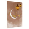 Feiere die besondere Zeit des Ramadans mit diesem kunstvollen Leinwandbild. Das Motiv kombiniert einen Halbmond mit warm leuchtenden Laternen und den arabischen Wörtern „Ramadan Mubarak“ in Goldtönen. Der weiche, beigefarbene Hintergrund mit einer feinen Textur verleiht dem Kunstwerk ein harmonisches Aussehen und lässt es sowohl traditionell als auch modern erscheinen.