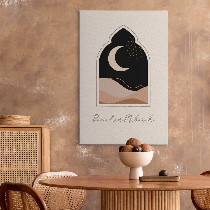 Dekoratives Moschee-Fenster mit Blick auf den Mond